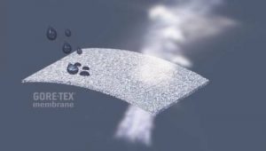 Per comprenderne meglio le qualità dei tessuti legate alla impermeabilità, traspirabilità e resistenza al vento dobbiamo sapere che la membrana Gore-Tex è costituita da pori che sono 20.000 volte più piccoli di una goccia d’acqua, quindi non permettono al vento e alla pioggia di entrare nel guscio; questo consente all’indumento di mantenere il nostro corpo asciutto e caldo. Le molecole di vapore acqueo sono invece 700 volte piccole dei micropori del Gore-Tex, quindi possono attraversare il tessuto dall’interno verso l’esterno (la traspirabilità viene calcolata misurando la velocità di trasmissione del vapore acqueo Moisture Vapor Transfer Rate).