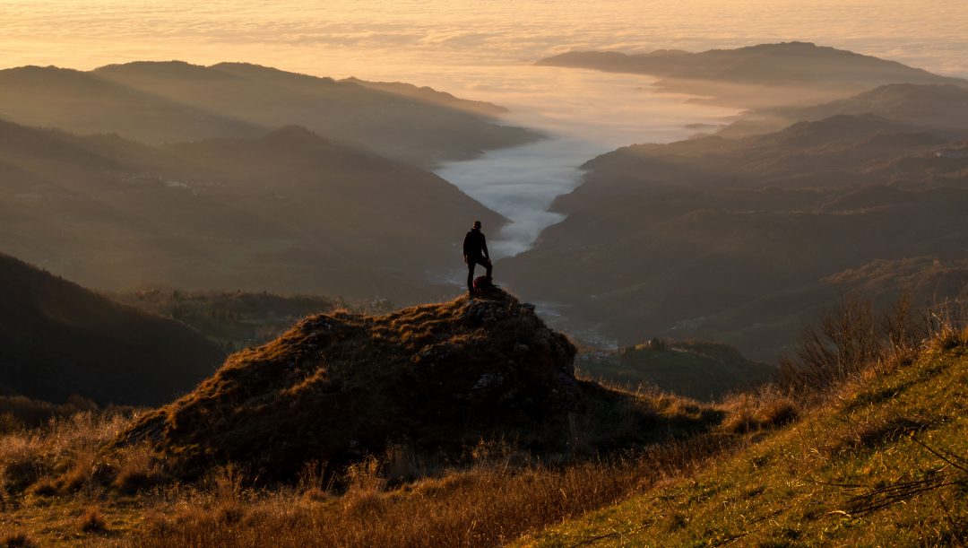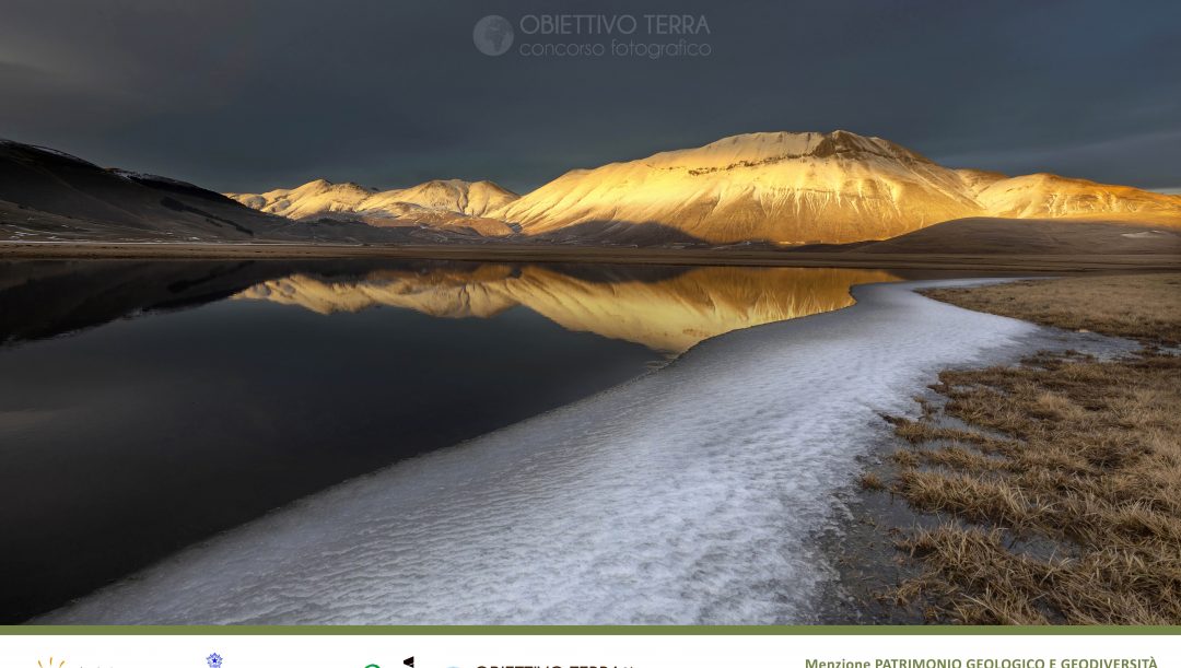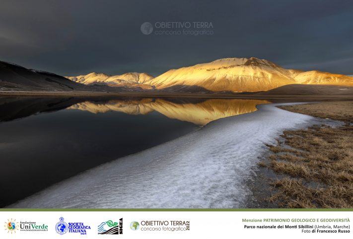 Monti Sibillini National Park at sunset, Castelluccio di Norcia village, Perugia district, Umbria, Italy