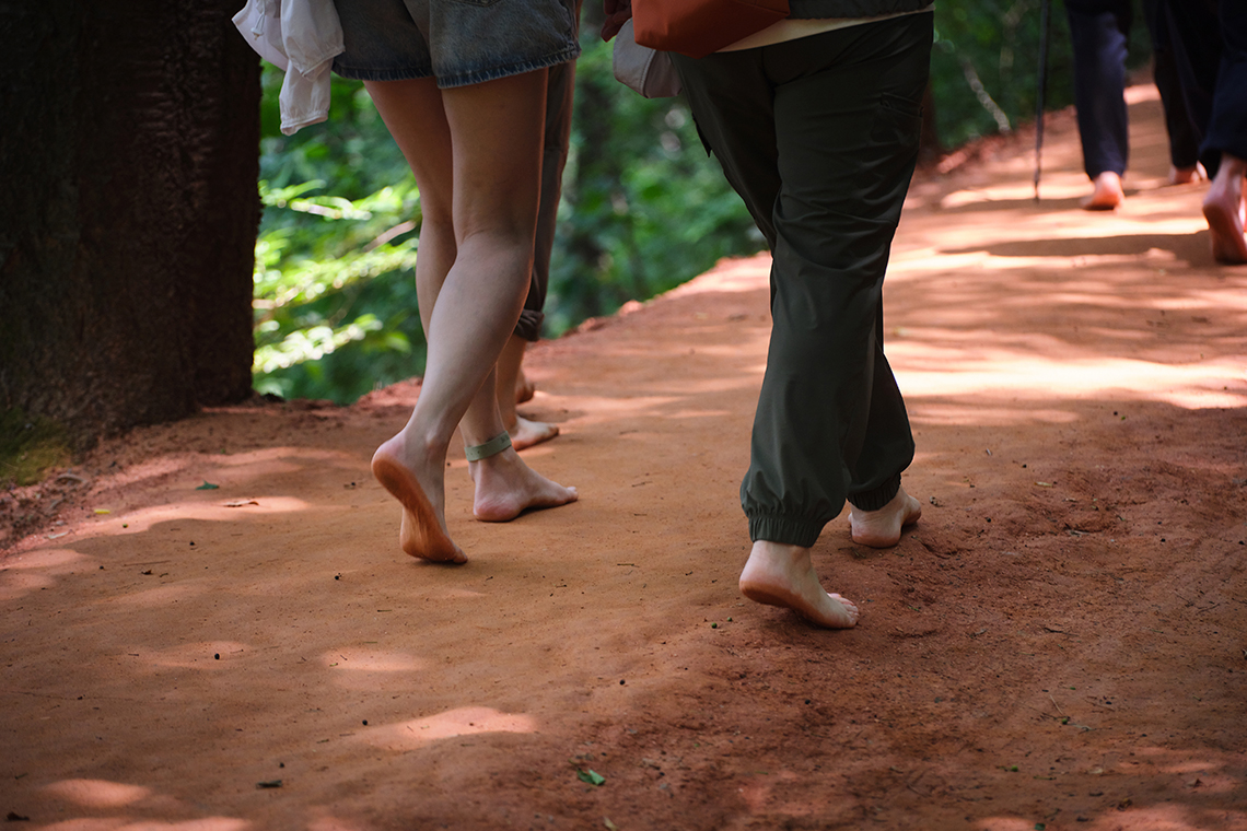 In Corea il benessere del cammino passa anche dal contatto diretto con il terreno.