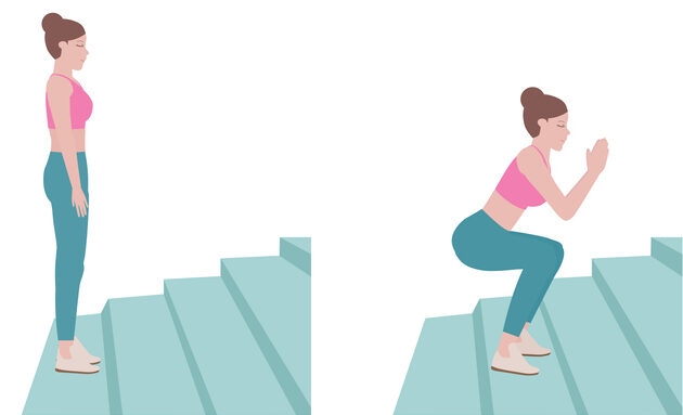 Il riferimento è di 50 ripetizioni, eseguite portando le anche sotto la linea delle ginocchia e tornando ogni volta in posizione eretta completa.