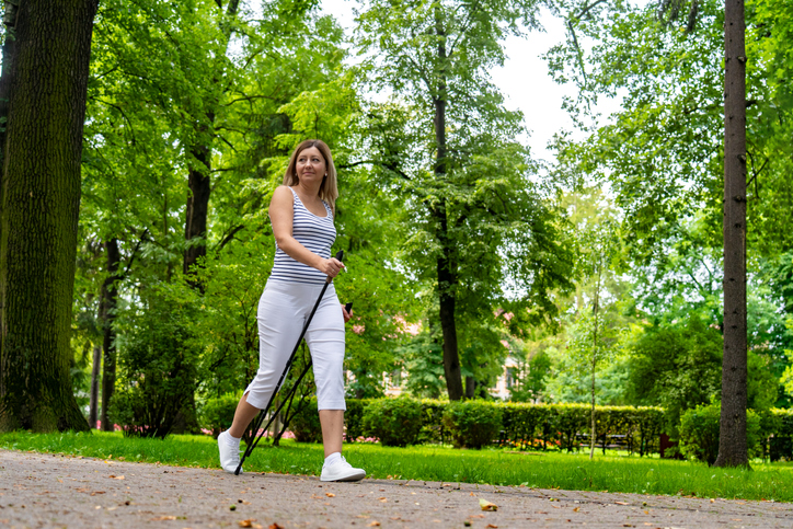 Un’ottima strategia per rendere la camminata un’attività completa è quella di utilizzare bastoncini da trekking.