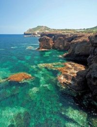 Proprio lungo questo tratto di costa ritroviamo alcune delle più suggestive grotte dell’isola, la Grotta Azzurra e la Grotta Verde. L’isola vanta un buon numero di grotte, la maggior parte delle quali raggiungibili esclusivamente dal mare.