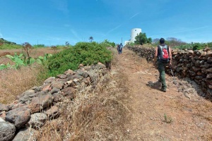 Da questo punto del sentiero comincia a dominare la vegetazione tipica delle coste rocciose, di origine vulcanica, che caratterizzano l’isola, intervallata da tratti interessati dal rimboschimento a pini attuato nei decenni passati.