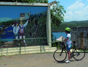 Siamo dei cicloturisti, abbiamo pertanto raccolto l’invito della cara Jennifer Hilton, ideatrice e impeccabile organizzatrice del divertente Jamaica Reggae Ride. Questo evento consente di esplorare ad ogni edizione annuale una parte diversa dell’isola. Tre giorni di percorsi con la nostra bici da strada e in compagnia di appassionati cicloamatori che il più delle volte si contraddistinguono per simpatia, convivialità e divertimento. Le tre tappe dell’edizione 2013 hanno coperto la parte nord dell’isola, registrando dolci e lunghi falsi piani, contro bilanciati da successivi declivi che riportano a pochi metri sul livello del mare: l’unica vera salita, con un massimo del 6%, è quella che raggiunge Port Antonio in un paio di chilometri. Le strade sono larghe, il fondo stradale in buone condizioni, ed è presente un servizio pulmino in testa e coda. Inoltre bisogna sottolineare i rifornimenti continui e l’assistenza di una squadra di ciclisti locali che fanno da fisarmonica da un estremo all’altro del gruppo di amici.