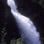 Dei cartelli gialli indicano l’inizio del sentiero che si snoda attraverso il fitto bosco. Dopo pochi minuti si attraversa, su un comodo ponte, un torrente. In breve si raggiunge la prima delle 3 spettacolari cascate del Rutor (nelle belle giornate vi si riflette l’arcobaleno).