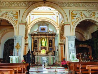 Il Santuario (m 1725) che si erge sulla Piana Bonocore (m 1700) risale, forse, all’XI secolo in seguito alla caduta della vicina Grumentum. Il simulacro della Vergine fu nascosto proprio nella cattedrale di Grumentum e da qui trasferito in cima al Monte Viggiano per evitare che venisse distrutto dai saraceni. La leggenda invece narra che alcuni pastori, attratti da insoliti fenomeni luminosi, rinvennero intatto il simulacro, subito trasportato a Viggiano e custodito nella cappella di Santa Maria Fuori le Mura, da allora detta del Deposito. Fu da questo momento che ebbe così vita il duplice pellegrinaggio: la prima domenica di Maggio il simulacro viene ricondotto in cima al monte (il luogo del ritrovamento) dove fu edificata una primitiva cappella, la prima domenica di settembre il simulacro viene ricondotto nella Basilica di Viggiano.