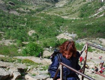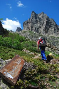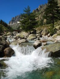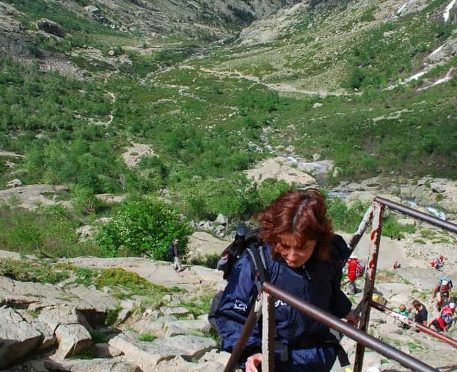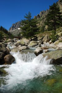 Dal piazzale s’imbocca il sentiero ottimamente contrassegnato (segnavia giallo) che sale gradatamente sul lato destro della valle Restonica, per poi avvicinarsi ancora di più al suo letto prima di iniziare una ripida salita. All’inizio del percorso si possono ammirare stupendi esemplari di pino laricio, patriarchi della natura che con il loro tronco diritto e slanciato verso il cielo possono raggiungere un diametro di 2 metri e un’altezza superiore ai 50 metri. Dopo alcuni tornanti ci si ritrova ai piedi di un bastione roccioso: qui bisogna usare prudenza perché le lastre inclinate risultano scivolose.