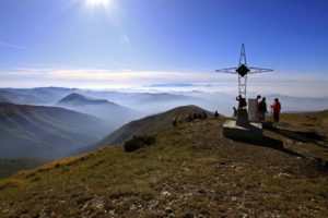 Il traguardo è ormai vicino: seguendo la segnaletica si arriva all’ultima salita, verso la vetta del monte Ebro (m 1700, la più alta dell’Appennino piemontese), resa chiaramente visibile dalla croce sulla sommità. Gli escursionisti possono ora riposarsi, e godersi la vista mozzafiato delle valli; in lontananza, le bianche, innevate Alpi e, nelle giornate più limpide, lo scintillio delle acque del Mar Ligure… ne è valsa la pena, vero?