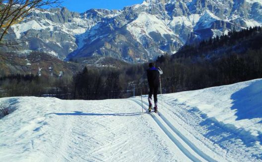 Ma torniamo al tratto iniziale del rilassante e breve tracciato Oltre Gesso: dopo l’attraversamento stradale si indossano nuovamente gli sci e si rientra in pista su un bel prato innevato, disegnato da una serie di anelli battuti. Si imbocca la curva in discesa, seguita da un’altra breve pendenza su gobbe, particolarmente facile e utile a chi sta muovendo i primi passi sugli sci da fondo e desidera imparare la tecnica in tutta tranquillità.