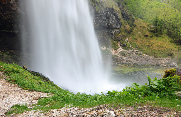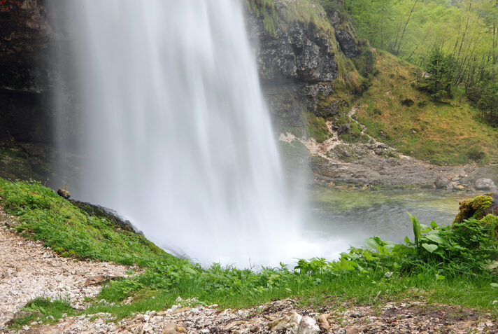 Un tratto del sentiero porta addirittura dietro la cascata, sotto un riparo roccioso: camminando qui si percepisce la forza dell’acqua e si resta rapiti dalle forme evanescenti della nebulizzazione