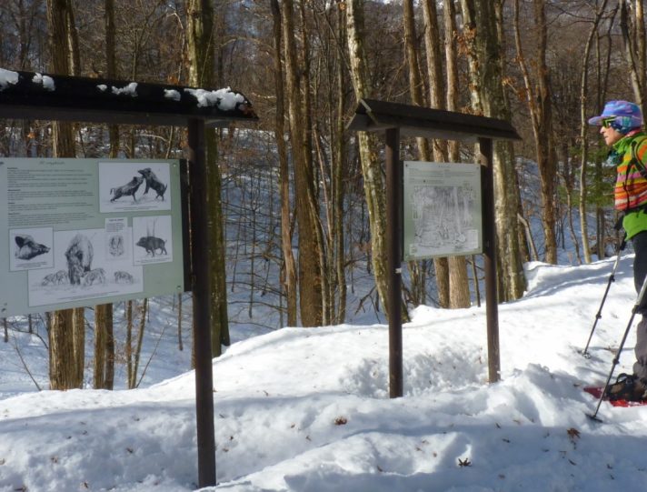 Da qui si imbocca una pista forestale ampia e generalmente ben battuta, spesso utilizzata come tracciato invernale per le racchette da neve.