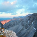 Usciti dal canalino la salita continua sulla cresta, sempre con buona pendenza, fino ad arrivare in vetta, e alla grande croce d’acciaio, issata da tre escursionisti del Dopolavoro della Banca d’Italia, negli anni ’50 del Novecento.