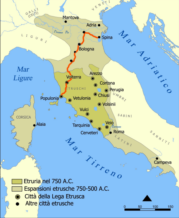 Un percorso ciclabile che attraversa l'Italia dal Tirreno all'Adriatico, lungo le orme dell'antica civiltà etrusca. Da Populonia, in Toscana, si arriva a Spina, in Emilia-Romagna attraverso colline, appenino e coste.