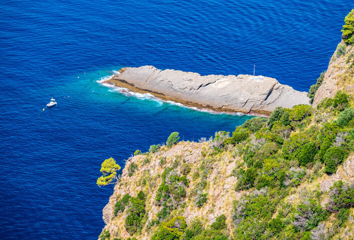 Rimanendo in quota, a circa 230 metri, si ammirano calette e insenature, dopodiché a Prato si scende verso il quadrivio di Costa della Pineta.