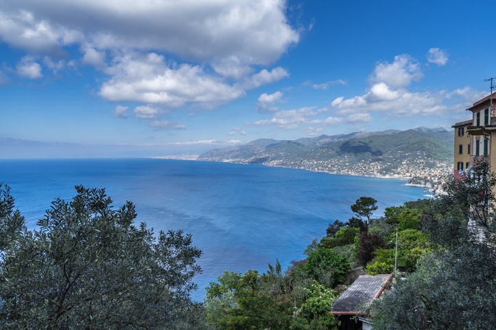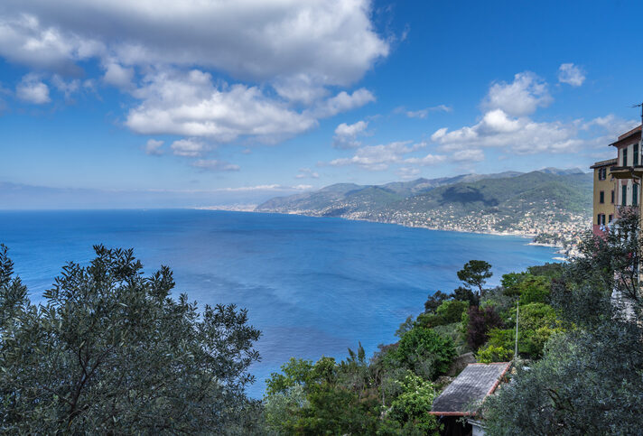 Salendo tra uliveti, piccoli terrazzamenti e muretti a secco, si arriva quindi sul sagrato della Chiesa di San Rocco, da cui si ha una prima splendida vista su Camogli.