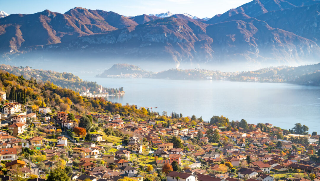The panorama of Lake Como photographed from Ossuccio, showing the Grigna, Bellagio, and the town of Ossuccio.