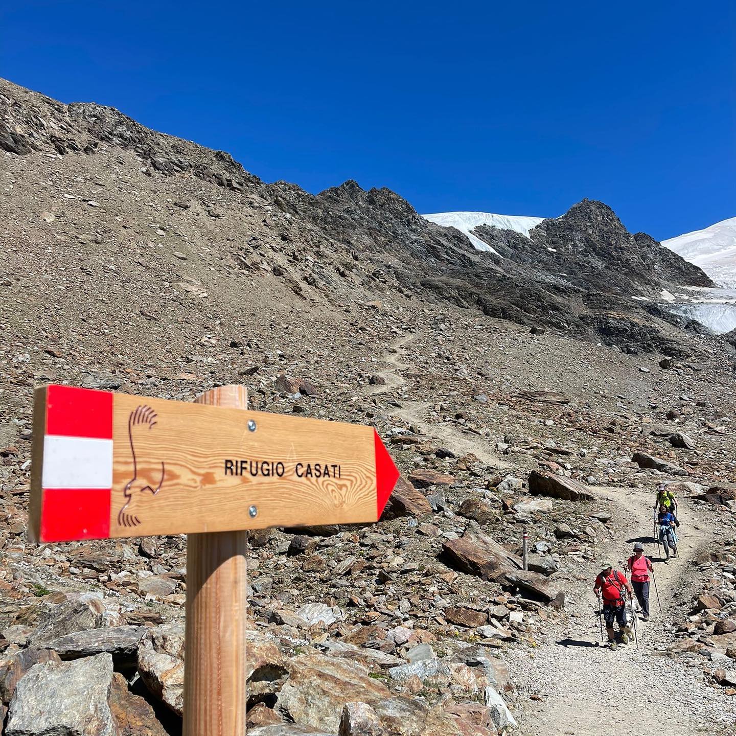 Questo rifugio, affacciato su un panorama a perdita d’occhio, è un punto di sosta strategico per chi affronta il Cevedale. Dal Casati il Passo del Cevedale è già visibile, così come buona parte dell’itinerario.