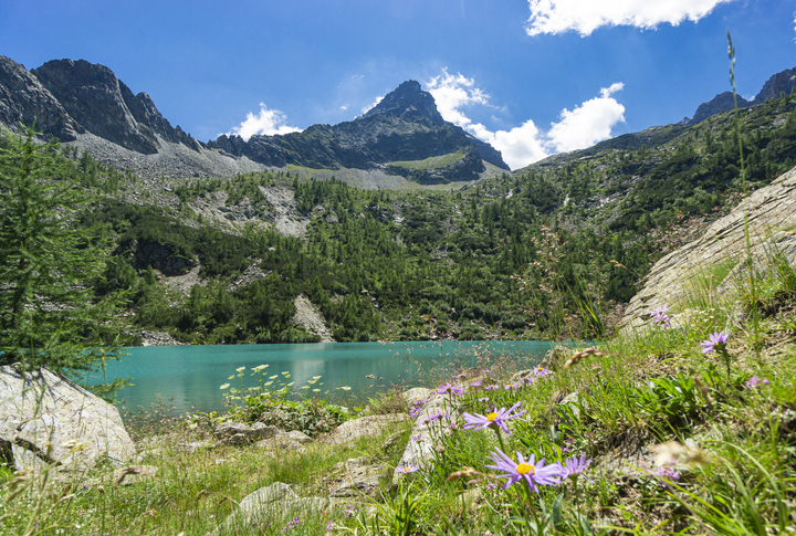 È facile incontrare mucche e capre al pascolo, e ascoltare il tintinnio dei campanacci.Arrivati sulle rive del lago, lo spettacolo è garantito: l’acqua turchese e trasparente contrasta con le rocce grigie e con il verde dei prati circostanti.