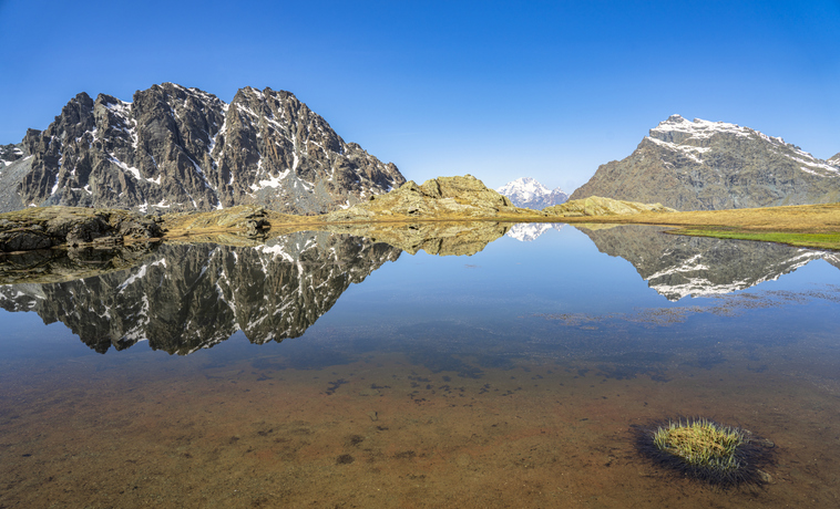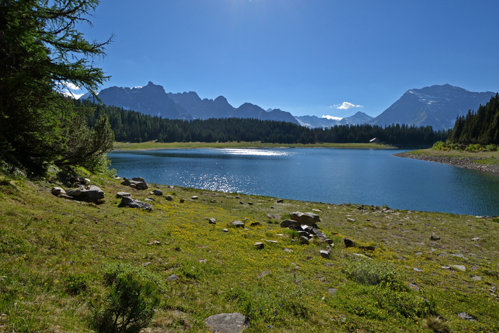 La vista spazia sul Monte Disgrazia e sul gruppo del Bernina, mentre tutto attorno si estende un ambiente alpino autentico, frequentato da marmotte, rapaci e camosci.