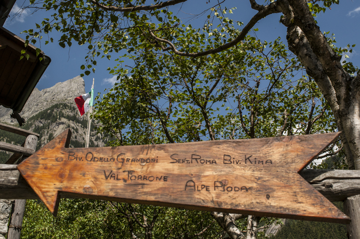 Dopo pochi metri si incontra la diramazione per il Rifugio Gianetti, ma per il Rifugio Omio si prosegue diritti, entrando nella parte iniziale della Val Porcellizzo.