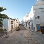 Ritornati indietro, all’imbocco della strada, si piega a destra per Via Olmo, che si abbandona subito a sinistra per Via Armando Diaz. Si scende, così, a intersecare Via Cesare Battisti; la si attraversa e si risale per un tratto Via Parini, fino a incontrare, sulla destra, Via Giosuè Carducci, che si segue in tutta la sua lunghezza, fino a giungere in Piazza Matteotti, prospiciente il Corso Vittorio Emanuele già percorso all’andata. Di qui si scende, per Via Tenente Cucci e la sua prosecuzione, Via Umberto, nuovamente in Largo Martellotta, dove, tra i numerosi negozi, ci si può affacciare alla ricerca di tipicità nella Panetteria dei Trulli. Di fronte si apre Via Sabotino, un’altra strada a gradini, che riconduce a Piazza D’Annunzio, prima della quale s’incontra il punto vendita dell’Azienda Olearia Intini. Poi, per Via Monte Pertica, si ritorna a Piazza Lippolis, concludendo così, il tracciato cittadino.