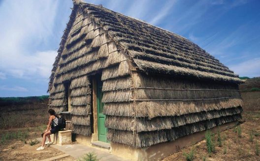 Raggiunta la scogliera si nota un capanno ricostruito a fini didattici: rappresenta un esempio di tipica abitazione dei pescatori del Sinis, ormai in disuso, con pareti in legno ed il tetto realizzato con un’erba palustre, il falasco.