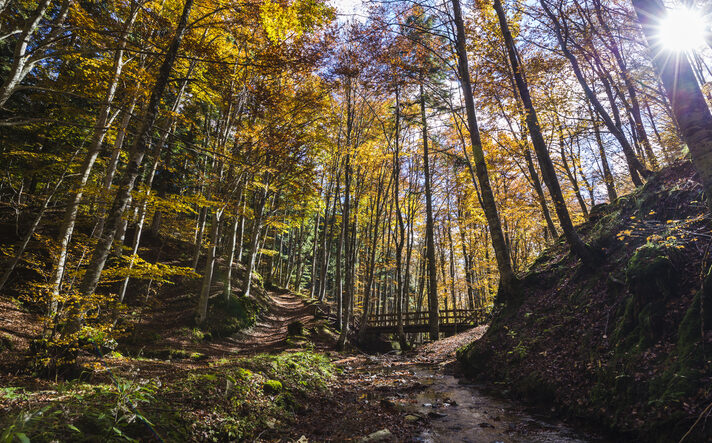 Partendo da San Benedetto in Alpe, si segue il Sentiero Natura Acquacheta (CAI 407), che si sviluppa lungo la riva sinistra del fiume Acquacheta, attraversando boschi di faggi e querce secolari.