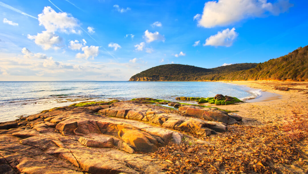 Nelle giornate limpide d’autunno, la luce radente del pomeriggio esalta la linea frastagliata della costa, mentre l’interno rivela la sagoma ondulata delle colline dell’Uccellina, che accompagnano il cammino verso sud con un paesaggio più aspro e solitario.