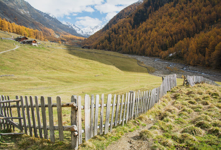 In fondo alla valle sorgono gli Eishöfe, antichi insediamenti d’alta quota che furono tra i più elevati stabilmente abitati delle Alpi Orientali; sono testimoni di una vita di montagna fatta di fieno, legname e pascolo.