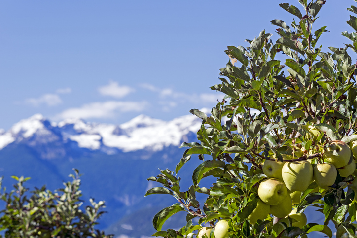 La primavera è certamente il periodo ideale per intraprendere questo percorso visti i meleti in fiore e la vista che spazia su un unico tappeto bianco fiorito.