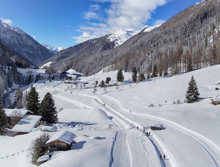 Lungo il cammino, l’attenzione viene catturata dalla luce che si riflette sulla neve, dal fruscio di un piccolo ruscello e dal canto degli uccellini che interrompono appena il silenzio della valle.
