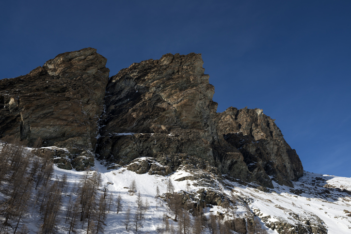 Cuneaz (Aosta, Valle d'Aosta, Italy), little mountain village in march in a sunny day