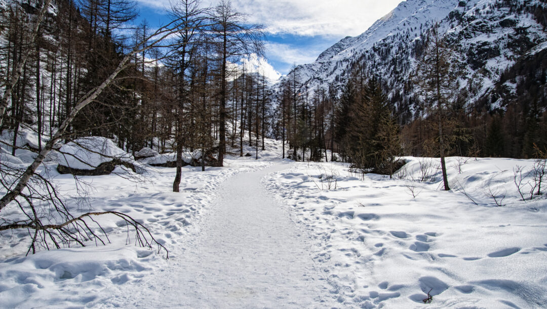Per chi pratica ciaspolate, la valle di Cogne propone itinerari semplici e ben segnalati, adatti anche a escursionisti non esperti.