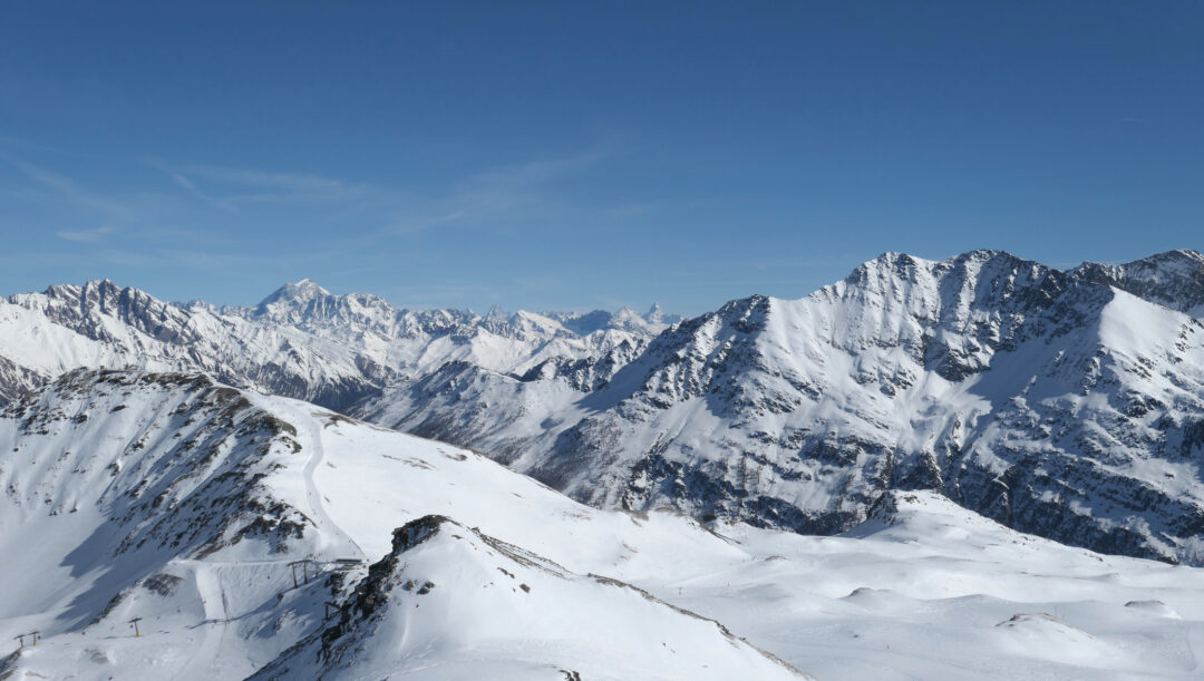 La Thuile, situata nell’alta Valle d’Aosta, si apre come un altopiano incastonato tra alcune delle vette più imponenti del Monte Bianco e circondato da boschi di larici e abeti che in inverno si ricoprono di un manto di neve scintillante.