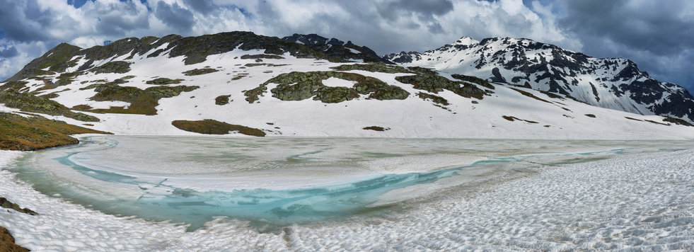 Partendo dal Colle del Piccolo San Bernardo, il percorso si sviluppa tra prati innevati e specchi d’acqua ghiacciati, alcuni dei quali effimeri, che catturano la luce e riflettono le montagne circostanti.