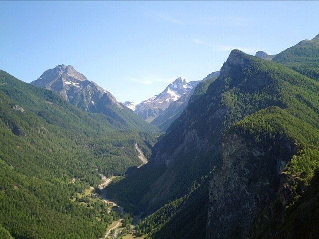 Ruderi visibili sul lato orientale della vallata poco a monte di Arvier, sembrano rendere ancora più arduo l’accesso al solco vallivo che risale verso il Rutor e l’Ormelune.