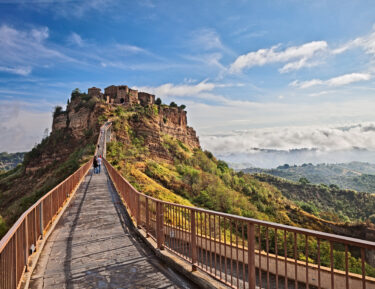 Civita di Bagnoregio, infatti, è un magnifico borgo dalla struttura architettonica piuttosto precaria, e questo lo si può notare facilmente percorrendo il ponte che conduce all’ingresso del paese.