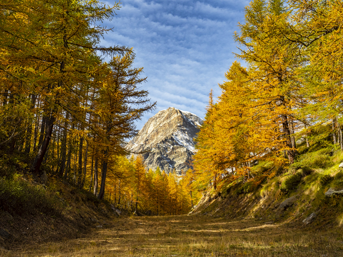 L’autunno è la stagione ideale per percorrerla: i boschi di larici si accendono d’oro, l’aria si fa limpida e silenziosa, e la montagna restituisce un ritmo lento e profondo.