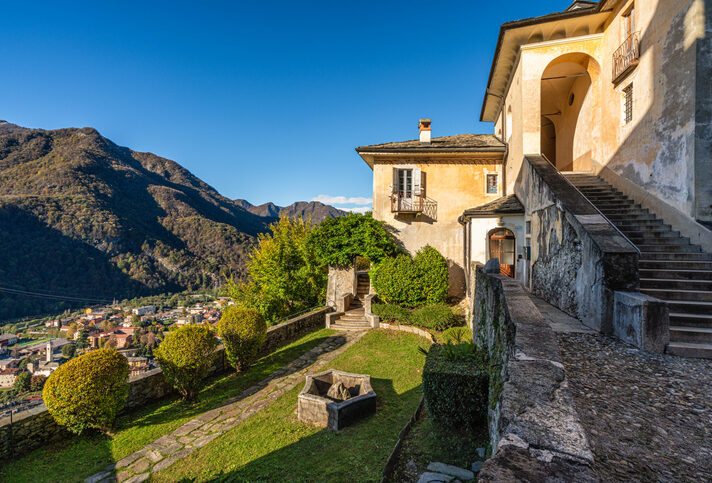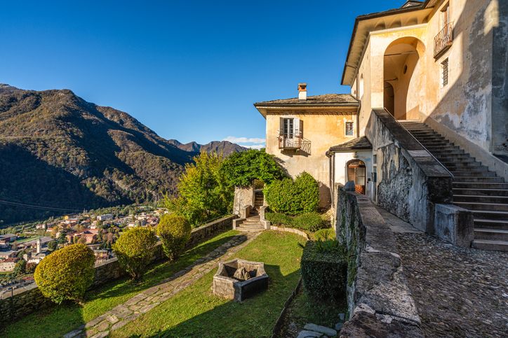 The beautiful Sacro Monte of Varallo on a sunny autumn morning. Province of Vercelli, Piedmont, Italy.
