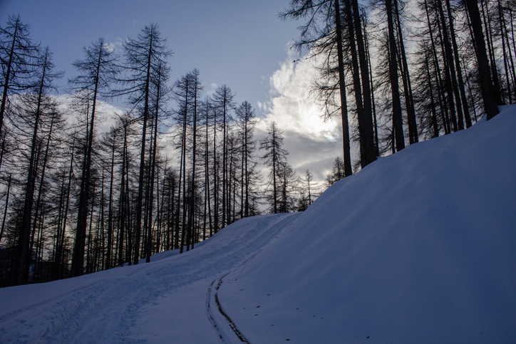 Il primo tratto, dolce e regolare, permette di prendere confidenza con il ritmo della salita e con la progressione sulla neve.