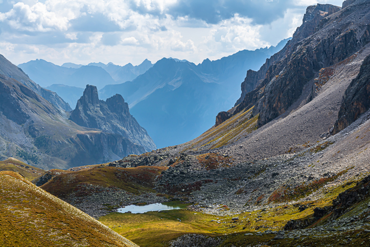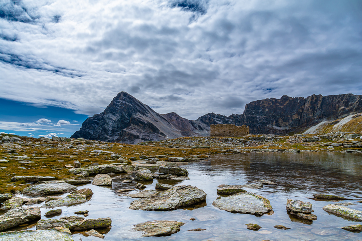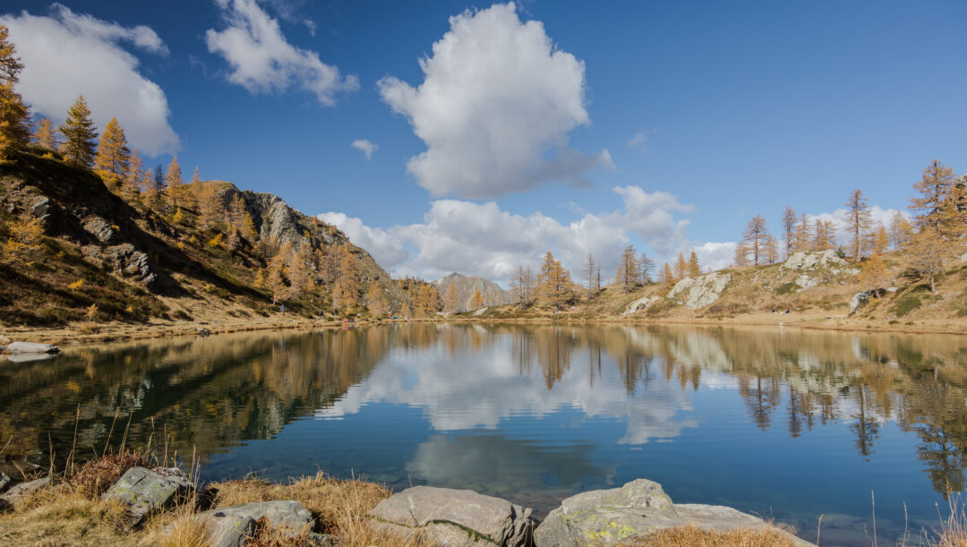 Salendo tra rododendri e pietraie, si raggiunge il punto più alto dell’itinerario, un piccolo colletto a 2.292 metri, dove appare un minuscolo specchio d’acqua.