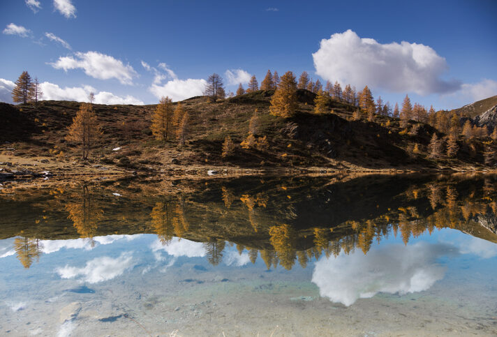 Dallo specchio d’acqua si gode della vista del Monviso che si riflette sulle sue acque, mentre alle spalle si stagliano il verde altopiano della Gardetta e l’imponente Monte Cassorso.