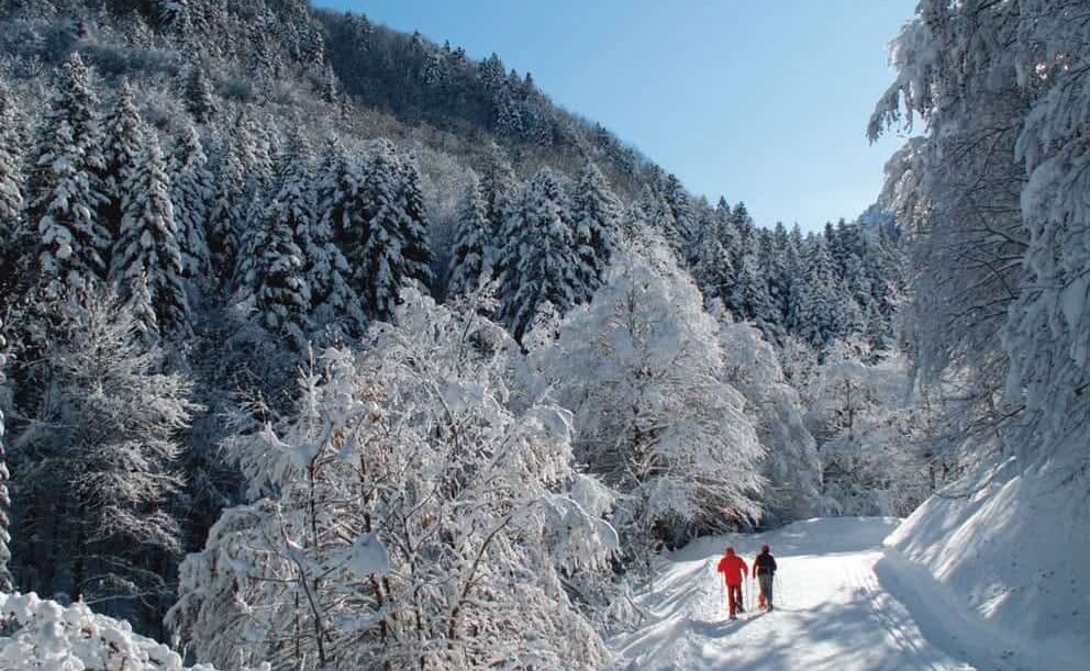 In inverno il Parco del Marguareis diventa un luogo magico: camminando con le ciaspole si possono avvistare cervi e camosci e ammirare la Certosa di Pesio immersa nella neve