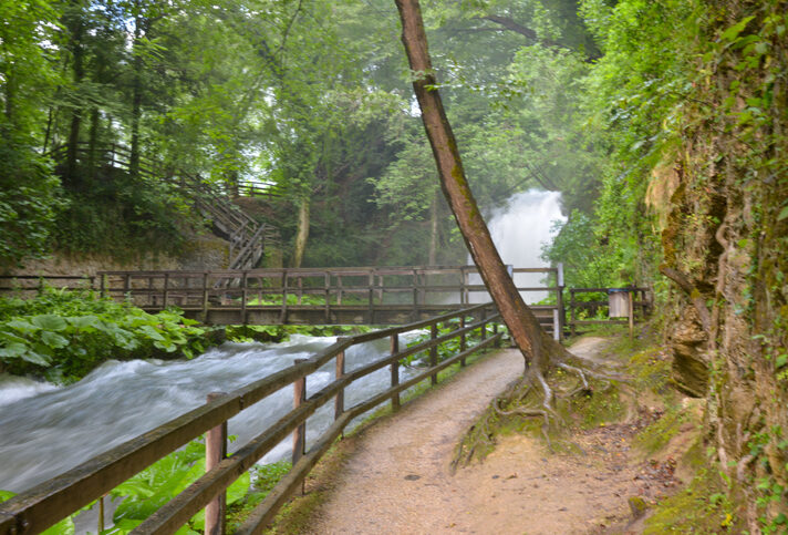 Breve (circa 330 metri), facile, dislivello contenuto (~30 m). Si sviluppa vicino alla cascata, passa su ponticelli e scalette, permette di avvicinarsi molto alla forza dell’acqua, e immergersi nella vegetazione intorno.