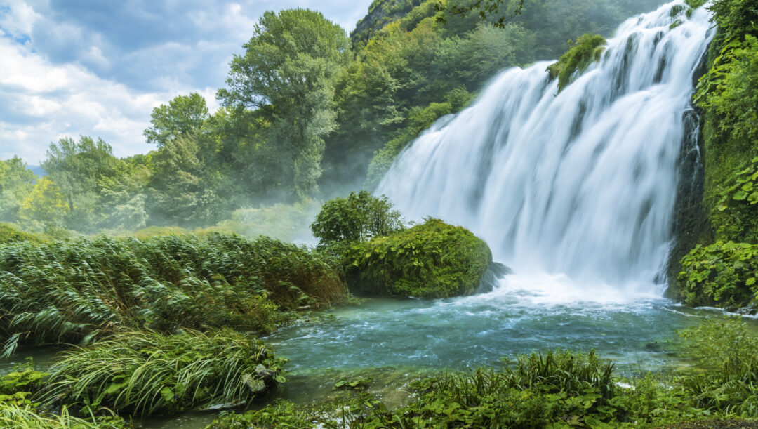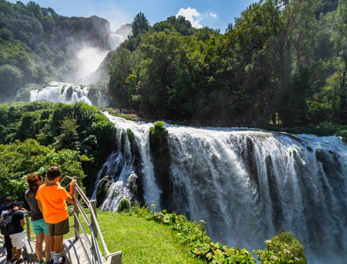 La Cascata delle Marmore, in Umbria, rappresenta un caso unico: è la più alta cascata artificiale d’Europa, con un salto complessivo di 165 metri, distribuiti in tre salti.