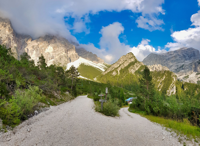 Parte da Pian delle Fugazze (Vicenza) e sale fino al Rifugio Achille Papa lungo una vecchia strada militare costruita nel 1922 per onorare i soldati caduti durante la Grande Guerra.