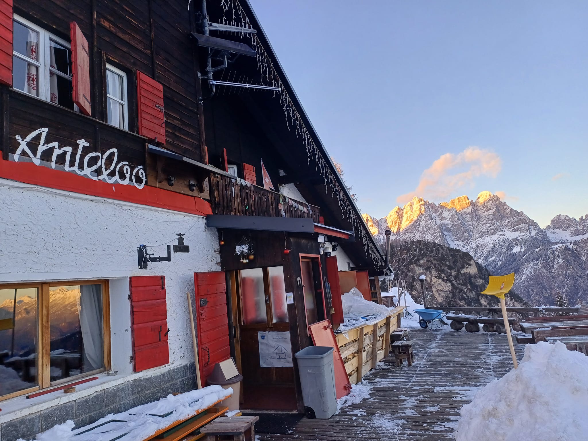 Raggiunta la meta, ci si può concedere una sosta rigenerante, gustare un pasto caldo e osservare con calma il panorama delle Dolomiti.