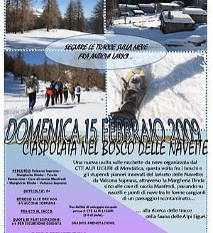 Domenica 15 Febbraio è in programma una nuova uscita sulle racchette da neve organizzata dal CTE ALPI LIGURI di Mendatica, questa volta fra i boschi e gli stupendi pianori innevati del lariceto delle Navette.