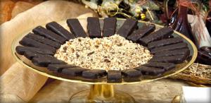 I maestri pasticcieri di San Marco dei Cavoti preparano ciascuno svariati metri di croccante che, distesa su di un lungo tavolo, viene poi ricoperta di scura e lucente glassa di cioccolato.