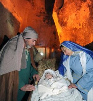 Un luogo dove i volontari delle Pro Loco italiane rievocheranno i mestieri dell’epoca, soldati romani, popolani, venditori di varie merci e la scena della Natività con la Vergine Maria che su un asinello accompagnata da Giuseppe raggiungerà una grotta naturale all’interno del Sasso Caveoso.